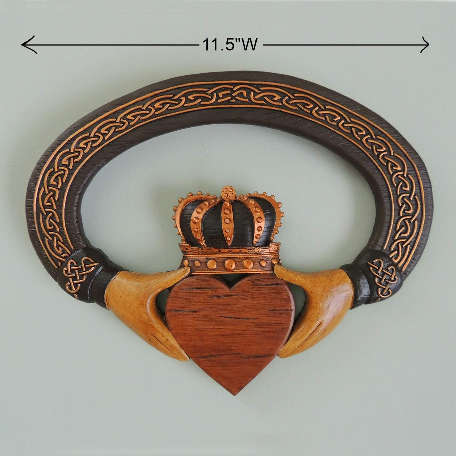 Abbey Gift 12" x 9.5" Claddagh Wall Hanging and Card. Wall hanging is crafted of resin with the look of distressed wood. Comes ready to hang. Paired with a gift card that explains the symbolism of the Claddagh. 12" x 9 1/2" Gift card message: The Claddagh This traditional Irish design represents the eternal bond of friendship, loyalty and love. The heart symbolizes love, charity and compassion. The hands of friendship are clasped around the heart in a gesture of generous giving. The crown signifies loyalty -- to family, friends, faith and heritage.