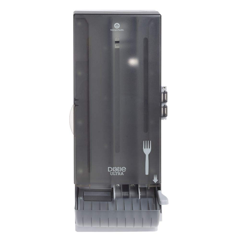 Save space and add convenience - this unique polystyrene utensil and dispensing system is narrower than a normal side-by-side installation. 3 Clearly marked dispensers can be wall mounted, circled on a carousel for counter use, or used with a carousel and optional stand for freestanding use. Dispensers and Utensils are black; Utensil Refills are packed 960 per case. Utensils and refills sold separately.