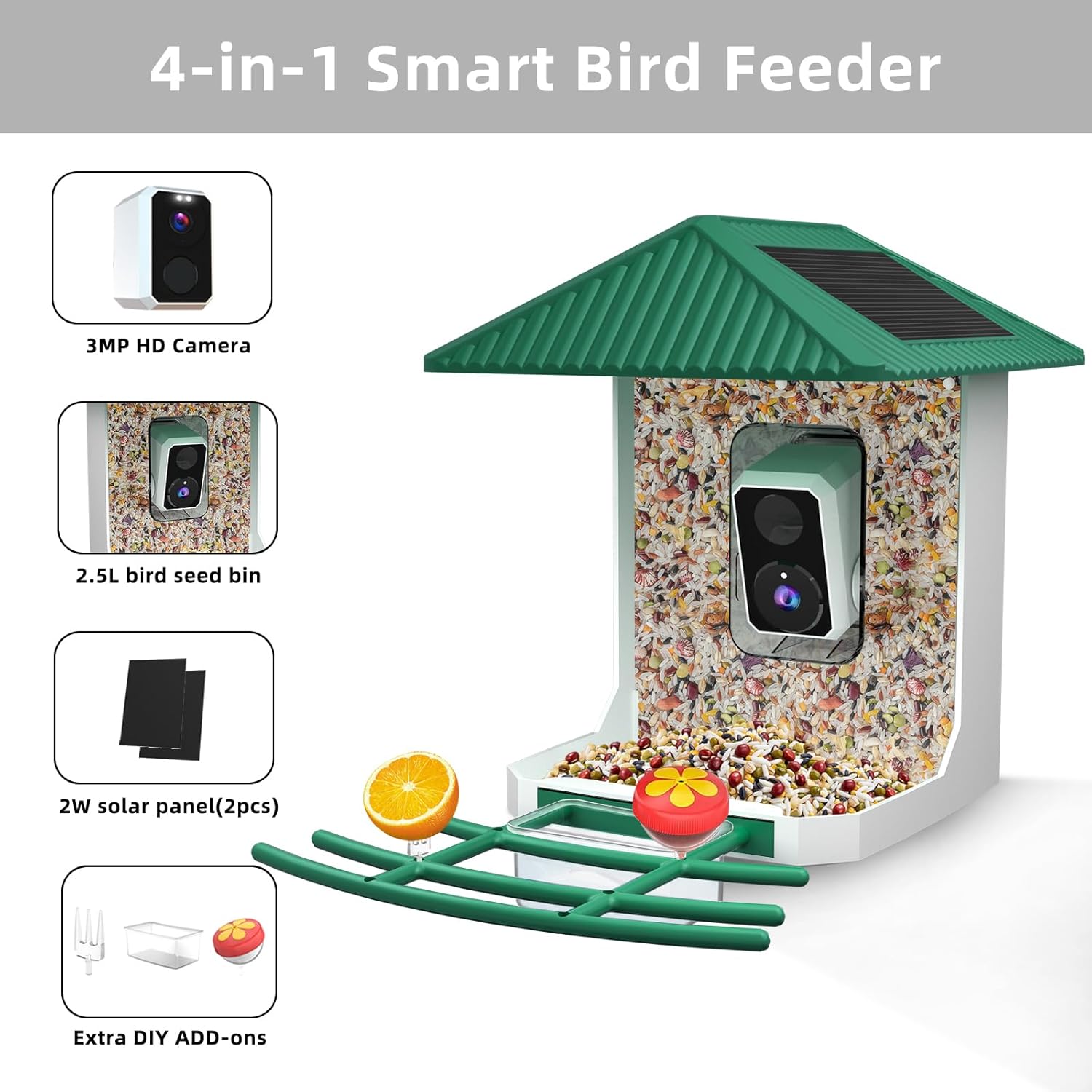 | Additional Features | AI Identifies, Waterproof, Solar Power, Bird Arrival Alerts |