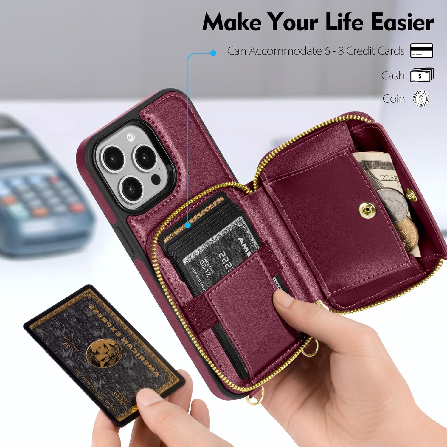 | Additional Features | 3 Card Holder, Cash Coin Pocke, Kickstand, RFID Blocking, Shockproof TPU |