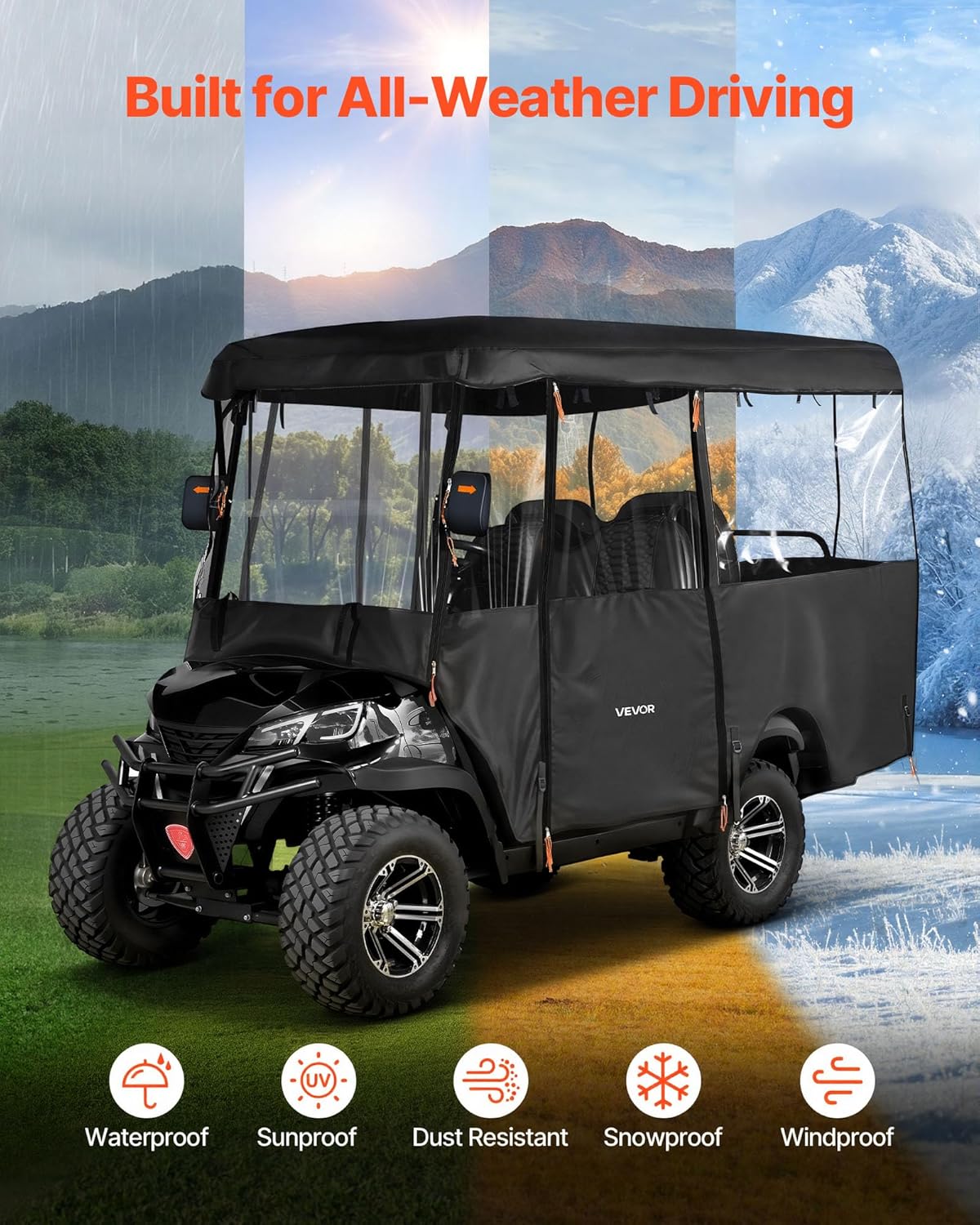 | Coverage | Full-enclosure coverage for 2+2/4 passenger golf carts (up to 87-inch roof length) |